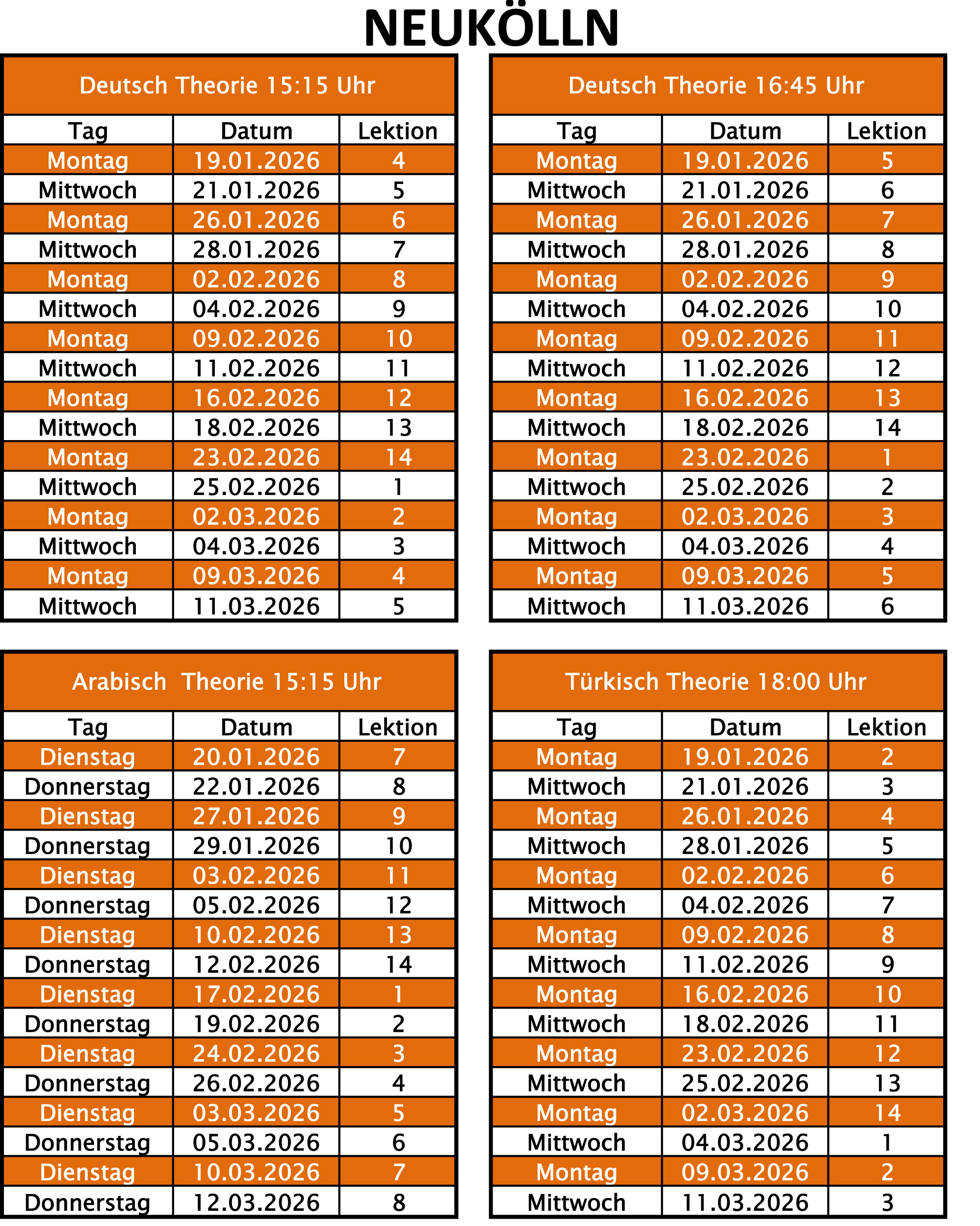 Theorieunterrichtszeiten